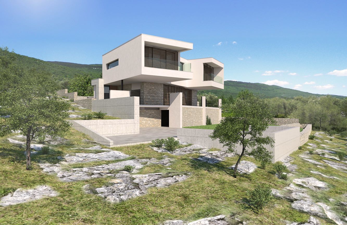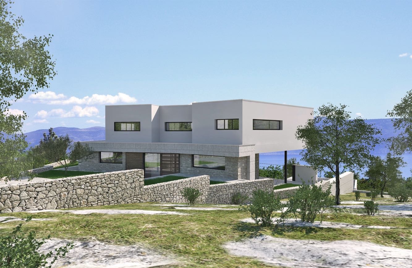 Snažna lokacija na brdu koja ima pogled na zvonik crkve Starog Grada i na Rabački zaljev utjecala je na sam koncept kuće.